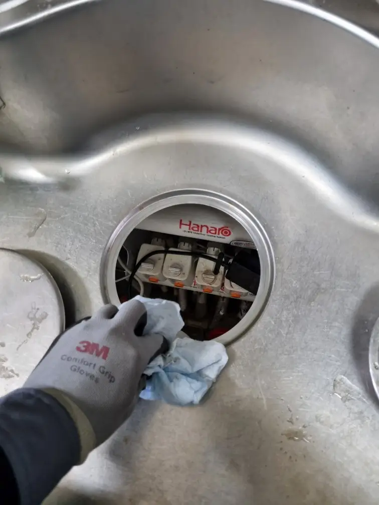 교체 전에는 하부에 물이 떨어질 수 있으니 수건이나 통을 준비하고, 배수구통과 연결된 부위를 분리합니다. 고정 너트를 풀어 기존 배수구통을 제거한 뒤, 배수구 주변 찌꺼기와 오래된 실리콘 잔여물을 깨끗하게 정리합니다.